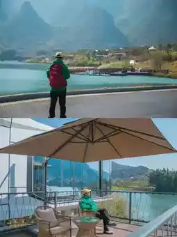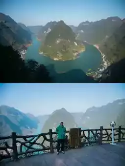 2️⃣ There are two check-in spots at the first bay of Hongshui River. One is a free check-in spot in the pavilion halfway up the mountain, and the other is a paid check-in spot at the top of the mountain. There is a glass plank road that overlooks the U-shaped bend in the entire mountain group. It is very spectacular to take photos and check in⛰️