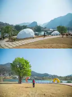 1️⃣China•Donglanpohao Lake Campground🏕️ (free admission), a newly opened campsite on New Year's Day, January 1, 2025, is built between mountains and waters. It can provide a barbecue area. For accommodation, there are space capsules, tent hotels, and camping ⛺️ barbecue 🍖. Here you can see the scenery of lakes and mountains, and experience various recreational activities. It is not a problem to play for most of the day.