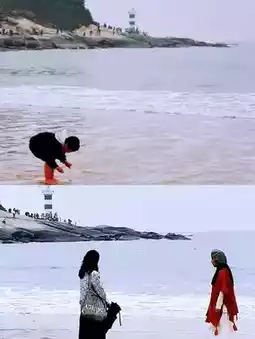 After the tide goes out, the sandbar emerges from the water and a double-sided sea is formed. The sand here is very fine and it is very comfortable to walk on it barefoot. The original plan for today was to hike from the coast of Nanyu Shuangmianhai to Nanmen Bay. However, due to the road closure due to construction work, we returned along the original route and took a taxi directly there.