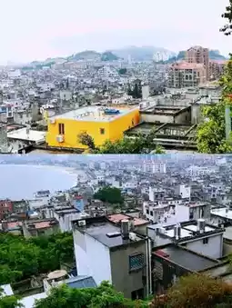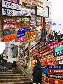 Go up the famous stairs, pass Wengong Temple, and reach Zuo'er Terrace, where you can overlook the panoramic view of Nanmen Bay. Although it was raining, the tourists were still in high spirits.
