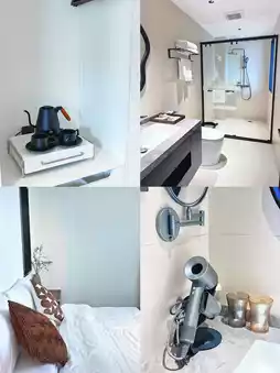 This time, we stayed at 📍That Sea Homestay, which features a mix of Wabi-sabi and Moroccan styles! They offer double rooms and family rooms, equipped with essentials like a mini fridge, a projector/large TV, and a smart toilet 🚽.