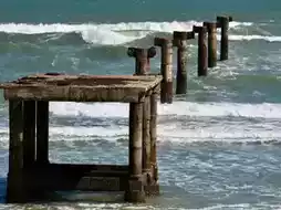 The old bridge ruins (Figure 4) are imbued with a sense of time. The mottled bridge piers stand tall amidst the waves, and the crashing waves create a unique, lonely beauty, perfect for those who enjoy artistic photography.