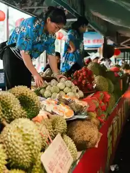 📍 Vietnamese Street: Shop for coffee, sandals, durian cakes, and endless snacks.