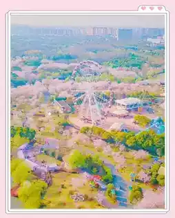 🌸Low-angle shot (lie on the grass and use a wide-angle lens to capture the Ferris wheel through the falling blossoms).