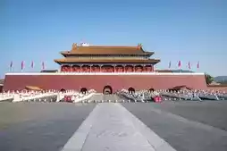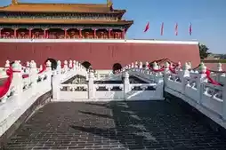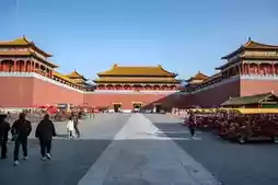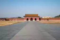 Construction of the Ming and Qing Palace Gardens began in 1998 and was completed in 2006. Built as a 1:1 replica of the Forbidden City in Beijing, it represents the pinnacle of Hengdian World Studios' city-building efforts. A total of 13 small mountain peaks were demolished to make way for the gardens, which cover an area of 1,500 mu and represent an investment of 800 million yuan. It is the largest film and television base in Hengdian World Studios. The resemblance to the Forbidden City in Beijing is striking, with all individual buildings replicated at a 1:1 scale. Only the "Tiananmen Gate" (Gate of Heavenly Peace) was reduced in size by 20% and renamed "Chengtianmen Gate," the name used during the Ming and Qing dynasties. The central axis runs through Daming Gate, Chengtianmen Gate, Meridian Gate, and Gate of Supreme Harmony, ending at the Palace of Heavenly Purity.