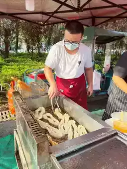 Local Snacks: Lijin Water-fried Buns, with a golden crispy crust, fragrant bottom, and rich filling; Shikou Roast Chicken, with a crispy skin, tender meat, and rich aroma.