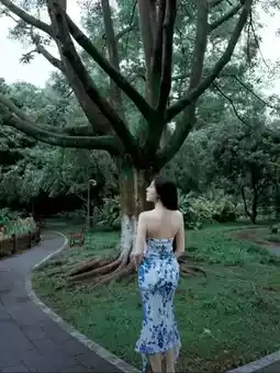 There are many ancient trees by the lake that make great backgrounds, and wearing a white dress makes any photo look beautiful~