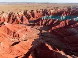 Crimson mountains layer upon layer, as if the earth's veins are pulsating. This is not the American West, nor the surface of Mars, but the stunning secret land of Dahongshan in Inner Mongolia's Siziwang Banner.
