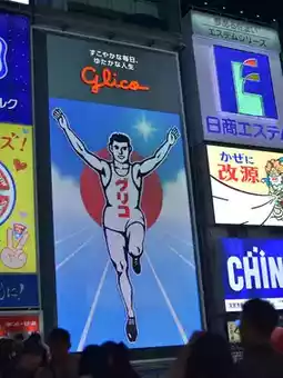 The Glico Running Man Sign, also known as the Glico Sign, is one of Osaka's most famous landmarks, located in the Dotonbori district in the heart of Osaka.