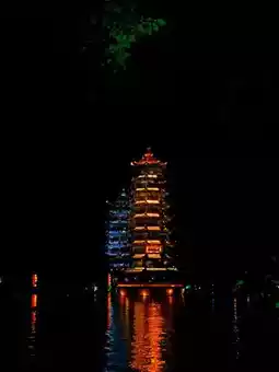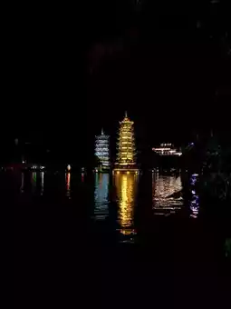 Highlights: Two beautiful towers located on a lake that represents the sun and the moon. Great photo opportunities and breathtaking at night. Lovely scenic area for a morning walk, but best in the evenings or at night. There is also a street food market located nearby which makes the place lively when the sun goes down.