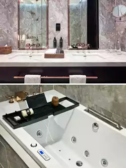 The entire hotel is mainly composed of three-bedroom villas and four-bedroom villas, as well as a five-bedroom villa. Each villa has a spacious living space, including multiple bedrooms, living rooms, private dining rooms, and a dedicated entertainment area. Each area is presented in an extremely luxurious and modern design style, perfectly combining comfort and fashion. The interior design adopts an elegant style, equipped with high-end furniture and exquisite decorations, and every space in the villa is filled with a warm and luxurious atmosphere.