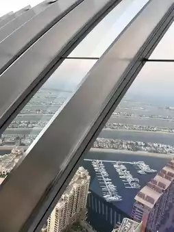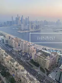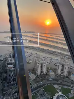 One of the must-visit spots for tourists in Dubai is The View Palm Jumeirah. Palm Jumeirah, an artificial island shaped like a centipede, has an observation deck where you can get a panoramic view! Tickets can be reserved every 30 minutes between 8:00am and 7:30pm all year round. It is easier to enter if you buy online. The price is 110 dhm per adult (about 4,400 yen in Japanese yen). However, during sunset time (16:30-18:30), the price changes to 165 dhm per adult (about 6,600 yen in Japanese yen). I happened to go there at sunset, so I paid this price, but I was very satisfied because I could see a spectacular view that was worth more than the price. It is located in Nakheel Shopping Mall in Palm Jumeirah, and you can take an elevator to the observation deck on the 52nd floor. To access it, take the metro to DMCC station, then transfer to the tram and get off at Palm Jumeirah station, then transfer to the monorail! #PalmJumeirah #Dubai #DubaiTrip #SpectacularSpot #OverseasTripTrip
