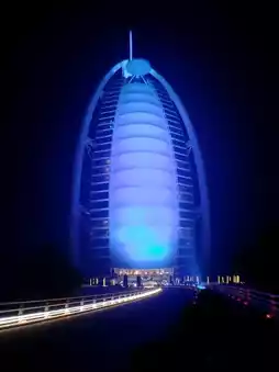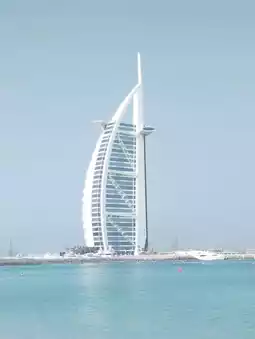The Burj Al Arab is located on an artificial island 280 meters from the Arabian Gulf. It is named after its appearance which resembles a sailboat standing on the sea.