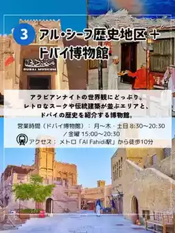 An area lined with retro souks and traditional architecture, and a museum introducing the history of Dubai.