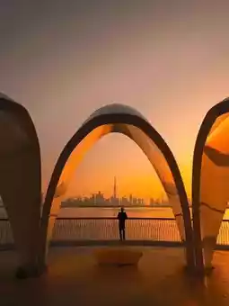 Standing beneath the arch, gaze across the sparkling water, and admire the skyline gilded by the sunset. Slowly immerse yourself in the gentle lapping of the waves, the afterglow of the sunset, and the caress of the breeze.