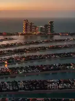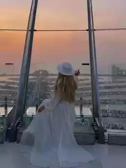 Standing at a height of 240m, unlock a 360° panoramic view of the sunset version of Palm Jumeirah. Golden light jumps and plays between the palm veins, conveying a message of beauty.