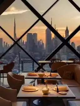 Sitting at a table by the window, collect the skyline while savoring delicacies gently wrapped in the sunset, allowing your taste buds and vision to indulge in this cloud-top romance together.