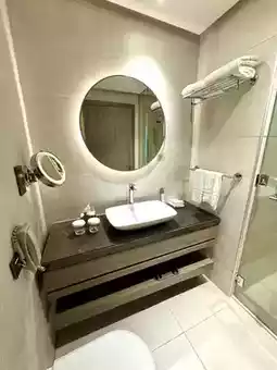 📍Bathroom: Glass Shower, Large Washing Space, Full Amenity (Bath Gel, Shampoo, Toothbrush, etc.)