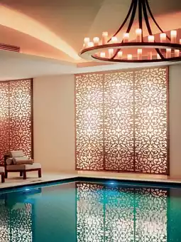- Leisure and entertainment: It has a 500-meter private white-sand beach, a 3,000-square-meter Cinq Mondes Spa, which offers a variety of treatments and one of the largest indoor swimming pools on Palm Island. In addition, the fitness center has advanced equipment and the children's club offers an "edutainment" program.