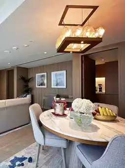 The rooms at Jumeirah Beach Hotel Dubai are decorated in bright marine tones, with some suites offering interconnected room designs perfect for family travelers. Leisure facilities include kilometers of private beaches, multiple themed pools, and the Wild Wadi Waterpark, where guests can enjoy free access to over 30 water attractions, including artificial wave surfing. Dining options feature more than a dozen restaurants and bars with diverse styles, covering Mediterranean, Asian, and Middle Eastern cuisines, with the beachfront grill restaurant being particularly popular for its fresh seafood dishes.