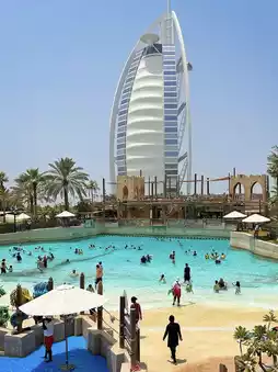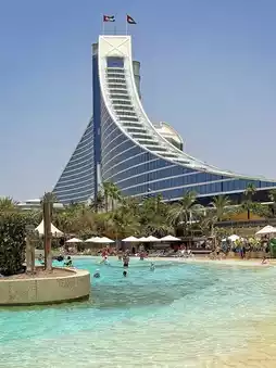 When visiting Dubai, besides the Burj Al Arab, this treasure of a hotel is the top choice: Jumeirah Beach Hotel Dubai, located in the prime coastal area of Dubai, adjacent to the Burj Al Arab and the Jumeirah Madinat hotel complex, stands out with its unique wave-like architectural design, making it one of Dubai's landmarks. The hotel's curved exterior mirrors the waves of the Persian Gulf, and all rooms feature sea-view balconies offering stunning views of the azure waters of the Arabian Gulf. As a flagship property of the Jumeirah Group, the hotel is renowned for its family-friendly amenities and a wide range of water activities, being one of the first in Dubai to pioneer the integrated resort concept.