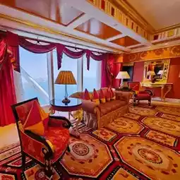 I took the Inside Burj Al Arab tour, and wow—every single suite room I saw was more spectacular than the last. Think two-story layouts, 24-karat gold accents, sweeping staircases, and panoramic views of the Arabian Gulf that made me stop and stare more than once. Each suite felt like its own private palace in the sky.