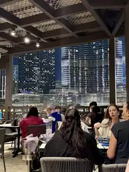 Located on Level 3 of Souk Al Bahar, the restaurant also features a terrace offering views of the Dubai Mall, the fountain, and the Burj Khalifa at night.
