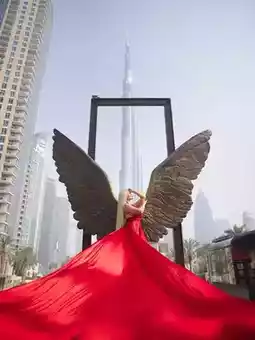 ✨ The golden wings paired with the Burj Khalifa create a quintessentially "Dubai" photo. The result is stunning!