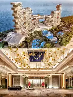 • Architectural Beauty: The hotel resembles a floating crystal palace, with a 22-story-high atrium hanging breathtaking glass artworks. When the lights come on at night, it looks like stars falling from the sky. My favorite is the infinity pool on the 18th floor, where lying there feels like floating above the Arabian Gulf!