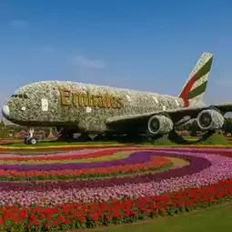 • Floral Sculptures – Giant flower displays shaped like castles, animals, and even an Emirates A380 plane.