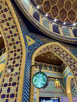 The mall is divided into zones representing different countries, making it feel like you're traveling.🏃♀️➡️This Starbucks is located in Persia Court, so head there!