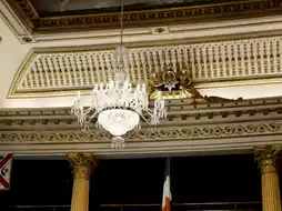 From the chandelier