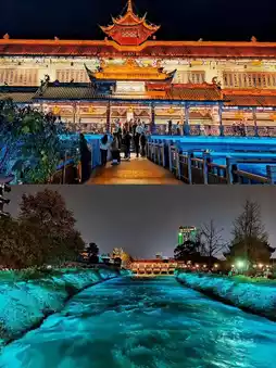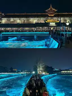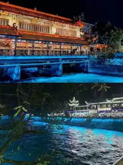 Go down from Dujiangyan Scenic Area to Guanxian Ancient City. The ancient city is quite commercialized, but the food is pretty good. We had rabbit head recommended by a local friend. After dinner, walk 5 minutes to Tianfuyuan to see the Blue Tears!