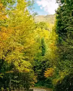 Introduction: Climbing up the winding ancient road of Gexian Mountain, you can encounter golden ginkgo trees all over the ground, and there are many small caves made of limestone, which adds a bit of fun.
