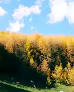 Introduction: Colorful autumn colors are laid along the mountain paths, scattered houses and colorful forests complement each other. On the big meadow, you can see the majestic snow-capped mountains in the distance and the cattle and sheep grazing leisurely up close.