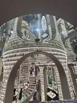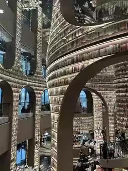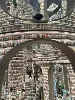 13:00 PM: We spent about an hour walking around and taking photos in the bookstore. There are many photo spots, especially the spiral staircase, but you might have to wait in line for a bit. After taking photos, if you're hungry, you can find something to eat in the mall. Then, we took a taxi to Nanqiao Bridge (南桥).
