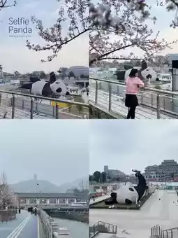 We exited the train station at exit D, turned left, crossed the road, and saw the selfie panda. We stopped to take pictures for about 20 minutes and almost got to every corner. From the panda spot, we called Didi to go to Panda Valley. It took about 15 minutes and cost about 14 yuan.