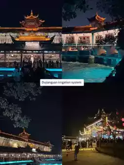 Dujiangyan Dam In the early evening, they will turn on the blue lights. It is very beautiful. It is a highlight. You have to see it. This is the reason why we had to take the last train back because we wanted to see the lights. We went to take pictures both during the day and at night. Both times are beautiful. But at night, there are a lot of people. #Dujiangyan #ChengduTravel #Chengdu attractions #Chengdu city