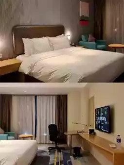 This time, we stayed at the Holiday Inn Express Tianhe, near **Tianhe Station** on Line 2, just one stop from Xipu Station. The service was surprisingly good—better than some Indigo hotels. The only odd rule was having to use scissors under staff supervision (??), but overall, the hotel staff were great~