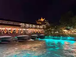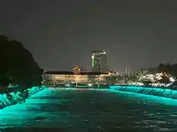 Nanqiao Bridge in 都江堰 is a beautiful and unique Chinese 廊式 bridge from the late Qing Dynasty, built to solve the problem of crossing the river. With its luxurious architecture of carved wood, painted ceilings and swallowtail tile roofs, it feels like a “water pavilion in the middle of the river”. Every step has a historical story. At night until late, the bridge still shines with a cool blue light, creating a romantic atmosphere. It is a great place to take pictures both day and night.