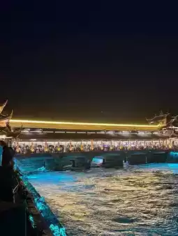 🌉 Dragon’s Dance at Dusk: 5,000 LED bulbs ignite, transforming the bridge into a glowing qilong soaring above moonlit waters.