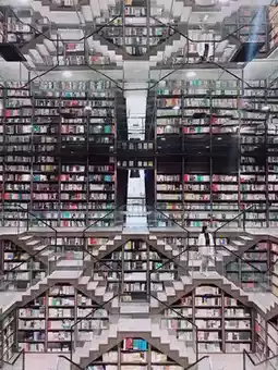 • 🌀 Stunning architectural beauty: A labyrinth of bookshelves