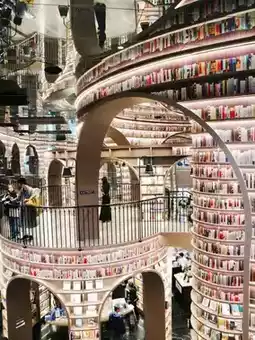 📝: A very beautiful bookstore, a popular photo spot for Instagrammers. Drinks are also available. If you're not buying a book, why not grab a coffee? Head to the large shopping mall, Sunac Mall. Dujiangyan Library is located on the 2nd floor of Sunac Mall.
