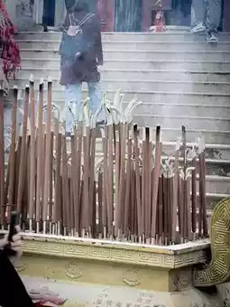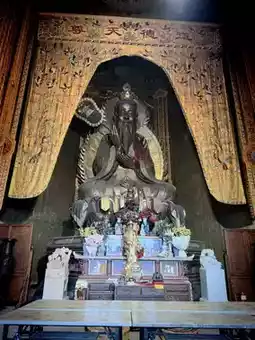 Enshrined within the temple is the golden statue of Taishang Laojun, clutching a whisk and a serene expression. He is revered as the "Ancestor of Dao" in Taoism, symbolizing the origin of the Great Dao. Pilgrims often burn incense and kowtow with the utmost reverence, praying for relief from misfortunes and peace of mind. Some also gaze silently at the Laojun statue, absorbing its transcendental aura.