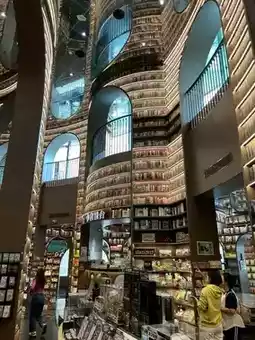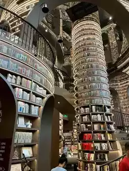 Located on Yulei Road No. 51 (玉垒路51) in Dujiangyan, Sichuan Province, this building stands out with its curved design and mirrored ceiling, reflecting the rows of books as if they were a museum. "A Dream City" with endless possibilities ✨