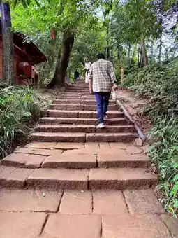 "Qingcheng is the most secluded under heaven," and the mountain scenery here is beautiful all year round. The front mountain is the most essential part; climbing from the foot of the mountain, 90% of the path is shaded by greenery. Looking down from the cable car, the vast forest sea of ginkgo and yellow camphor trees is spectacular. No wonder Master Zhang built the Celestial Master Cave here. I especially love the mountain in the early morning; walking past the red palace walls of Shangqing Palace and hearing the faint chanting from the Taoist temple, even the breath feels crisp and pure.