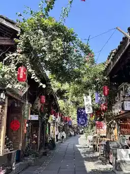 After exiting Lidui Park, walk toward South Bridge. Cross the bridge to reach the Guanxian Ancient City shopping district.