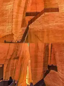 🎯Yandang Study: Transformed from an abandoned quarry, this study boasts a unique spatial layout, resembling the Mogao Caves. Sunlight streams through the crevices, casting dappled light and shadows on the bookshelves and books, creating an artistic and photogenic atmosphere.