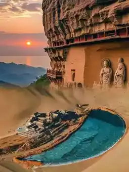 -Highlights✨: World Cultural Heritage, the largest existing treasure house of Buddhist art, 735 caves, 45,000 square meters of murals.