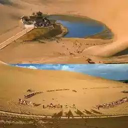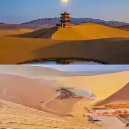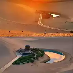 2️⃣Singing Sand Dunes & Crescent Moon Spring: "When will the crescent moon set over Jade Pass, its clear light transformed into spring water?" This poem perfectly describes the beauty and mystery of Crescent Moon Spring. The spring is not only a masterpiece of nature but also carries countless historical and cultural meanings. When you ride a camel, accompanied by the gentle sound of camel bells, walking through the desert, you can almost see the bustling scenes of ancient Silk Road merchants. At sunset, the desert sunset view is intoxicating. At night, there's also a romantic starry sky chorus with thousands of people, allowing you to feel the charm of music and the tranquility of nature under the vast starry sky.